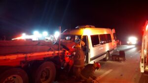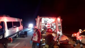 El accidente se registró a las 03:33 horas , se recibe llamada de reporte de choque frontal entre una camioneta tipo van contra un tractocamión tipo plataforma en la carretera 57 km. 42 al norte tramo Saltillo-matehuala.