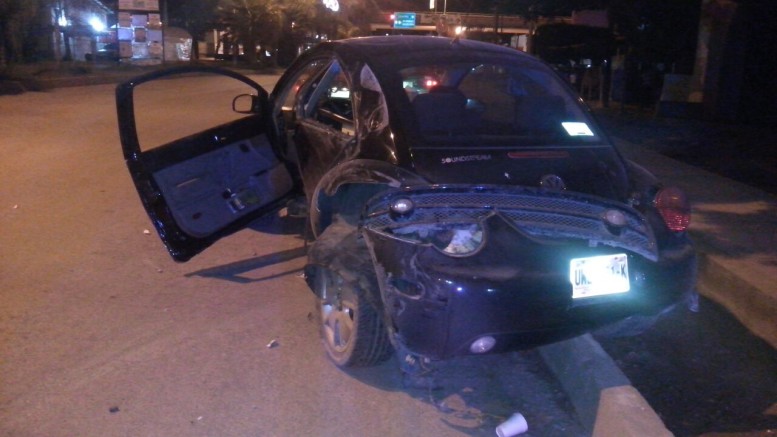 El chofer del vehículo perdió el control al tomar la curva prolongada chocando su unidad en el camellón central, el automóvil compacto salió disparado a la parte contraria para frenar su carrera en la banqueta del frente.
