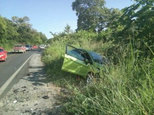 Tres vehículos chocaron en la carretera Valles-Tamazunchale  La tarde del viernes donde  se registrados dos personas lesionadas y daños materiales .