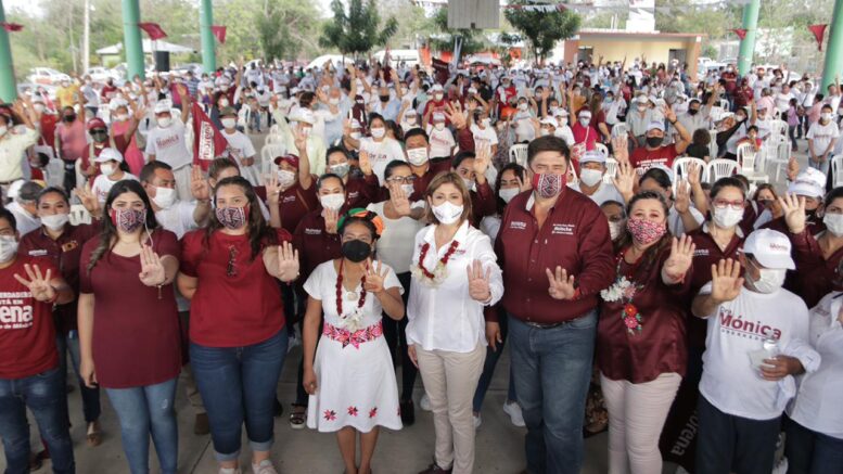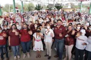 Tanquián de Escobedo, SLP.- Ante cientos de ciudadanos que refrendaron su compromiso para votar por las y los candidatos de MORENA el próximo 6 de junio, la candidata a gobernadora Dra. Mónica Rangel se comprometió a sumar esfuerzos con Juan Antonio Azuara El Moloche candidato a la presidencia municipal para lograr el cambio y la esperanza que merece Tanquián.