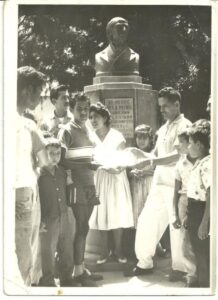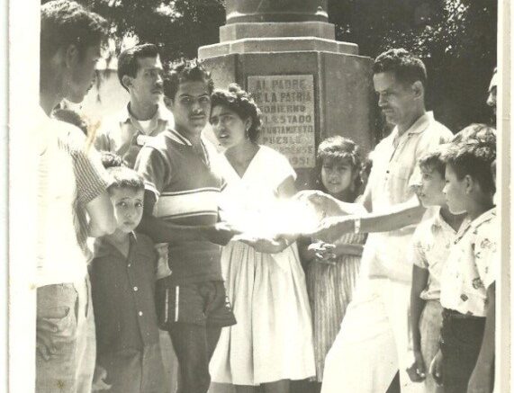 IMAGEN NO.01- En el año de 1951 durante el periodo de Eleázaro Martínez Sosa como presidente Municipal, se construyó una glorieta con pedestal en el centro de la plaza de San Juan, donde se develó el busto en bronce del Padre de la Patria, don Miguel Hidalgo y Costilla.