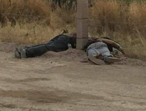 Los cuerpos con huellas de violencia y  ejecutados con disparos de arma de fuego,fueron  localizados este día en la Carretera que conduce de Puerta del Refugio a Villa de Guadalupe, en un predio perteneciente al Rancho El Melchor, Villa de Arriaga.