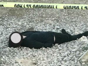 Agentes policíacos y personal de la Procuraduría General de Justicia acudieron al eje 104 y las vías en donde se reportó a un hombre ejecutado de aproximadamente 26 años de edad y con atuendo tipo vigilante.