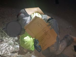 El sujeto de 32 años aproximadamente fue ejecutado y su cuerpo arrojado a unos matorrales en camino a Peñasco, autoridades municipales quienes fueron los primeros respondiebtes confirman el hallazgo de un mensaje que ya se investiga indicaron que tiene que ver con ajustes de cuentas entre cárteles locales .