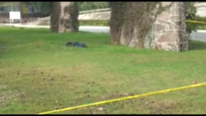 El hombr vestía chamarra negra, pantalón azul de mezclilla y tenis negros, su mano izquierda estaba recargada sobre su frente acudiendo los servicios periciales quienes dieron fe del cuerpo y recabó pruebas; que presentaba impactos de bala a la altura del esternón y otro más por el rostro; el cuerpo se encontraba en la parte baja del puente Carlo Magno en una zona cubierta de pasto en el carril de Oriente a Poniente.