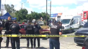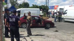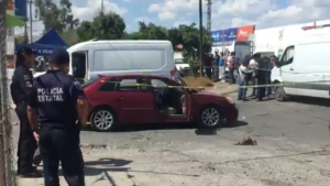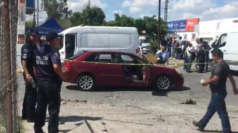 El sujeto ejecutado, quedó en el interior de un auto malibú color rojo, del lado del volante mientras que su acompañante estaba lesionada y tirada en el suelo afuera de la unidad .