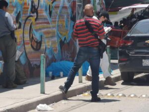 Pasado el medio día de este miércoles, el terror se apoderó de las familias y señoras que surtían su mandado en el mercadito que cada mitad de semana se pone en la calle Manuel Muro de la colonia San Luis