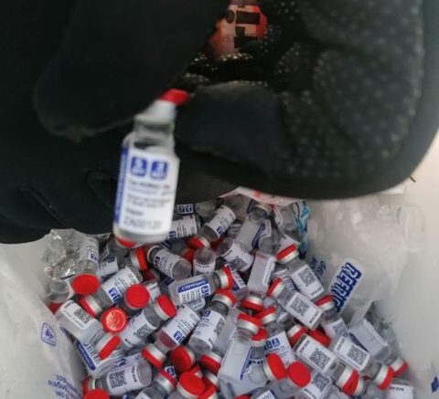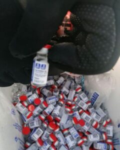 Personal de Aduanas procedió con el embargo precautorio de los frascos con las vacunas, que se mantendrán conservando la cadena de frío.