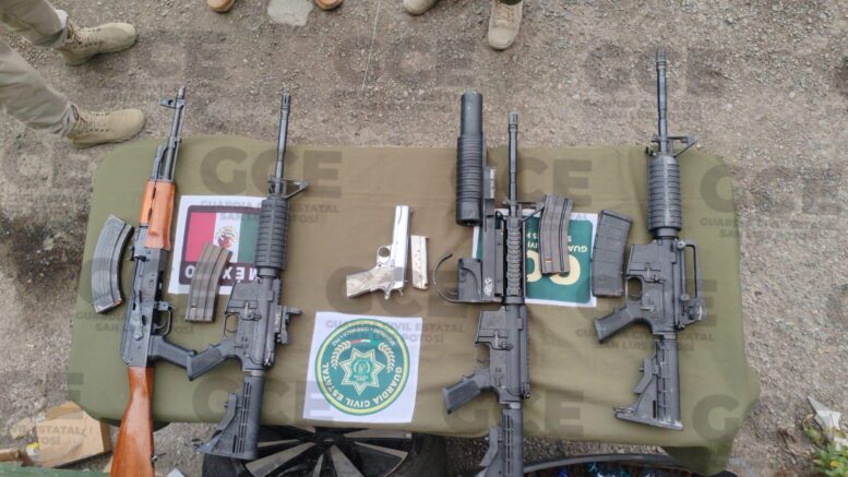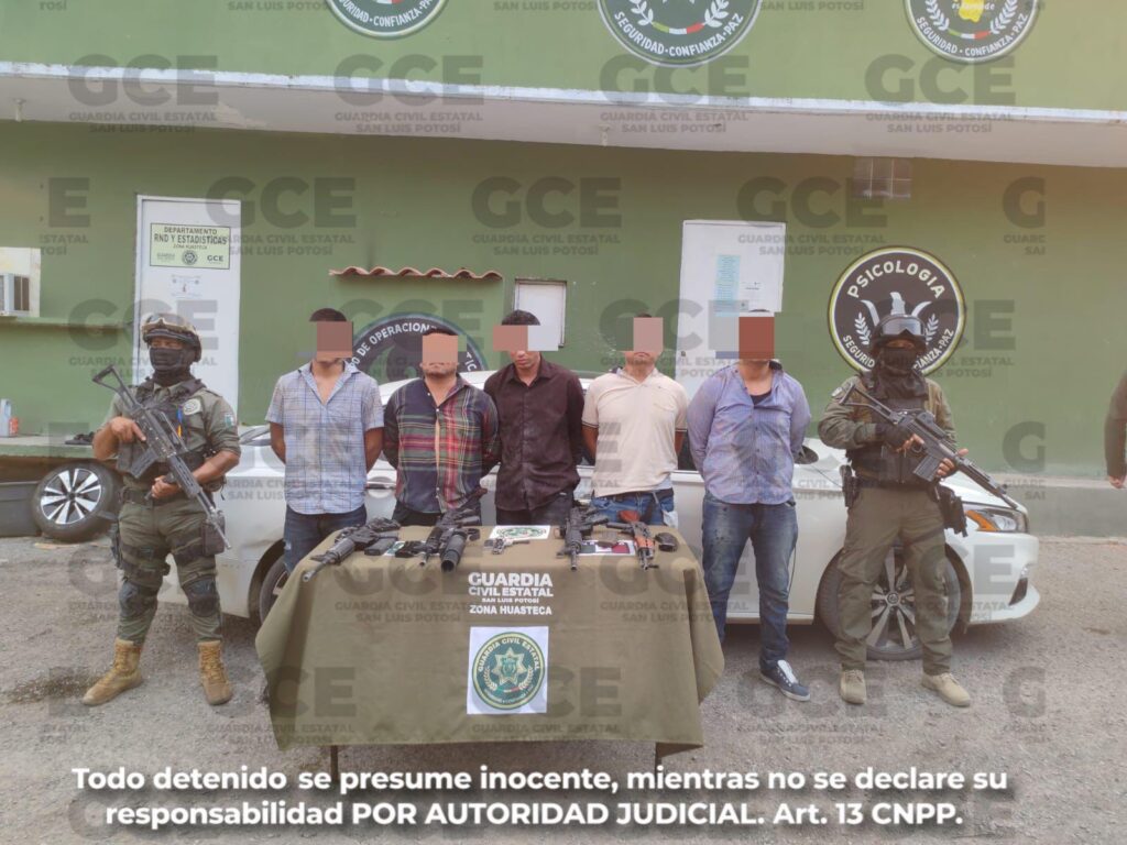 Ciudad Valles, S.L.P.- Un certero golpe contra la delincuencia organizada se concretó en la región Huasteca gracias a un operativo coordinado entre la Guardia Civil Estatal (GCE) y la Secretaría de la Defensa Nacional (SEDENA), que culminó con la detención de siete personas y el aseguramiento de un significativo arsenal, cargadores, cartuchos útiles y un vehículo.