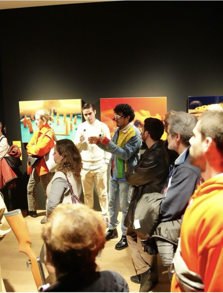 Durante la visita, Emmanuel compartió su visión del arte contemporáneo con las y los asistentes, guiándolos a través de las obras que conforman esta emblemática colección del Museo Jumex, la cual refleja la efervescencia cultural que marcó a México en los años 90.