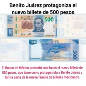 La imagen de Juárez, presidente en el periodo de 1858 a 1872, sustituye la que tenía desde 2010 como protagonistas al artista Diego Rivera, y en el reverso a la pintora Frida Kahlo.