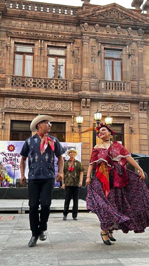 - La agrupación versó al son del huapango sobre los atractivos de San Luis Potosí entre otros temas en el marco de las actividades de Semana Santa.