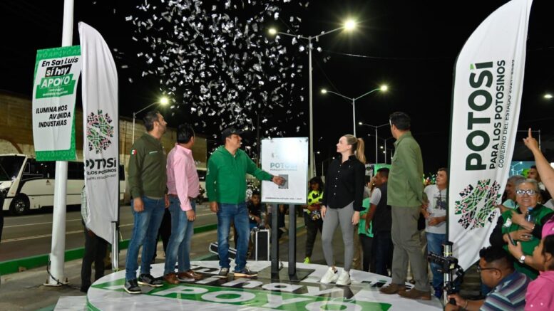 Como parte de las acciones del Gobierno de San Luis Potosí en apoyo a la seguridad y el desarrollo en la zona metropolitana, el Gobernador Ricardo Gallardo Cardona inauguró el alumbrado público en avenida Industrias, de Circuito Potosí al eje 124.