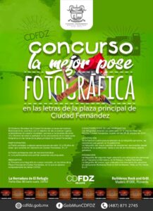 El Gobierno municipal de Ciudad Fernández a través del Instituto Municipal de la Juventud, convoca a jóvenes de entre 12 y 29 años de edad a participar en el concurso de fotografía en las letras panorámicas de la marca CDFDZ que se ubican en la plaza principal.