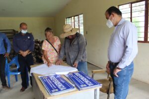 Para ello el Alcalde Saúl Moreno Martínez, acudió a este poblado en compañía del titular del Departamento de Participación Ciudadana, Moisés Molina Olvera, para hacer la entrega de este apoyo, mismo que fuera recibido por la Presidenta del Comisariado Ejidal, Norberta Juárez Rivera y el Juez Auxiliar, Domingo Don Mata.