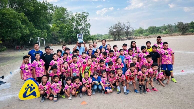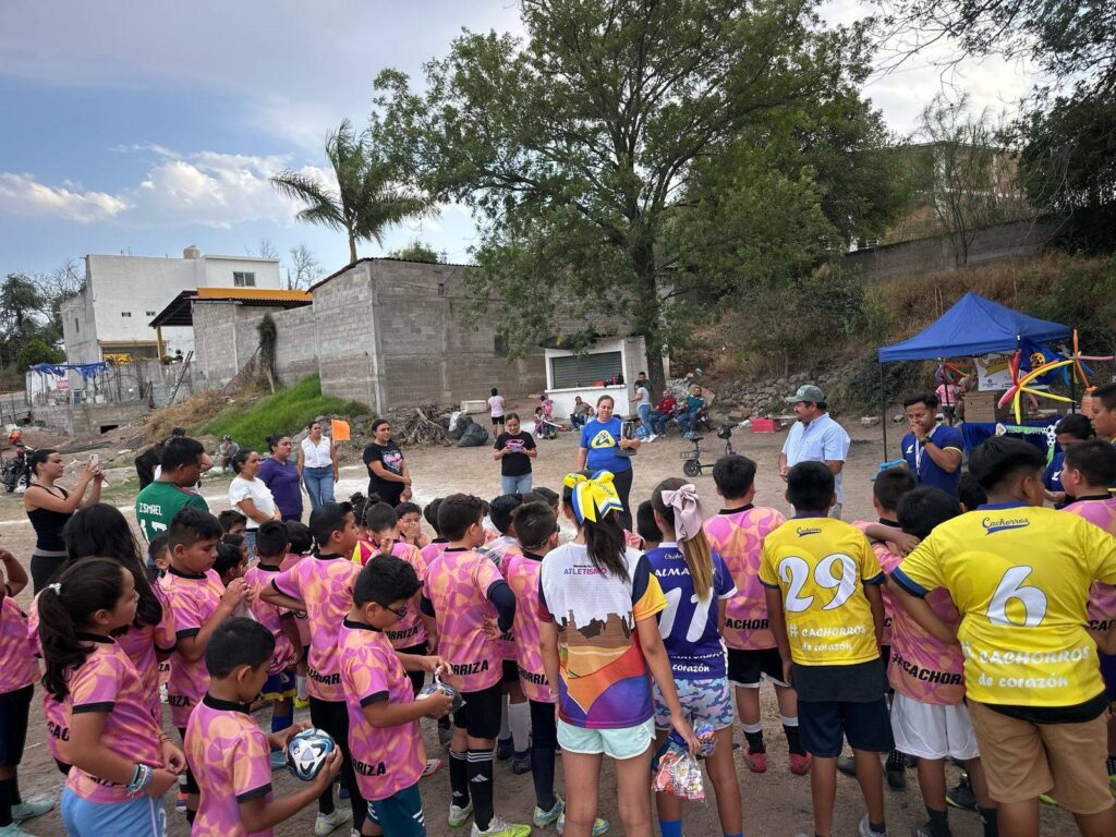 El presidente municipal Rodolfo Loredo hizo entrega de uniformes al equipo de fútbol infantil Cachorros de la Zona Media, quienes representaron con orgullo a la región en la Copa Atleti, celebrada del 22 al 26 de abril.