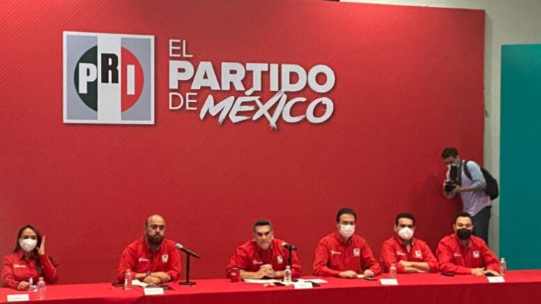 El presidente del Comité Ejecutivo Nacional del PRI, Alejandro Moreno Cárdenas, estuvo presente en la conferencia de prensa, en la que se dio a conocer este resultado preliminar, que le da ventaja en los 16 distritos.
