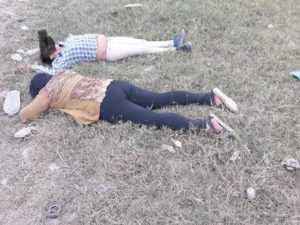 Las corporaciones policiacas arribaron al lugar de los hechos y efectivamente se encontraron con dos mujeres tiradas, una boca abajo y la otra boca arriba.