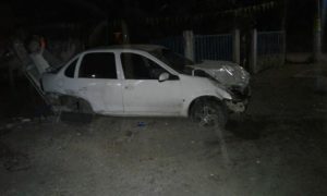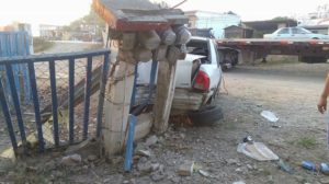 Un joven quien manejada a velocidad inmoderada se impactó contra un trailer y terminó su loca carrera chocando contra un muro con mufas de la CFE.