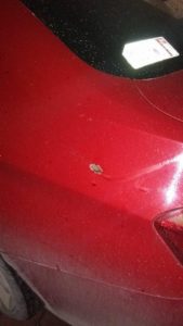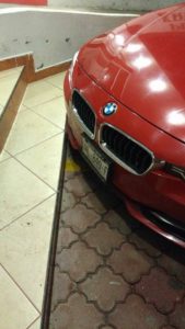 Momentos después, en calles de Cerritos, agentes ministeriales detectaron un vehículo BMW en color rojo que presentaba un impacto de arma de fuego en la parte trasera lateral izquierdo, por lo cual le marcaron el alto y descendió una persona que portaba chaleco táctico y tenía una lesión en la mano derecha.