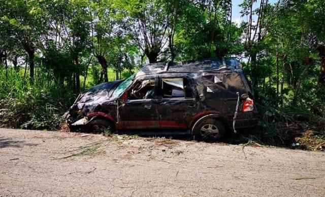El conductor argumentó que un animal se le atravesó y por esquivarlo sufrió el accidente, pero en se presume que en realidad no se dio cuenta que había un charco de agua y enseguida está la curva por eso la unidad derrapó.