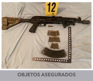 Una vez en el inmueble, procedieron a realizar la inspección, localizando 5 armas de fuego largas, siendo tres calibres 7.62 y dos calibre 223 con sus respectivos cargadores abastecidos.