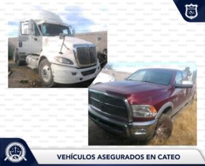 En la inspección se localizó un tractocamión, marca International, modelo 2018, en color blanco, mismo que fue robado el 27 de diciembre de 2022; asimismo, se encontró una camioneta Dodge, tipo RAM 3500, modelo 2012, en color guinda, robada con violencia el 15 de diciembre del año pasado.