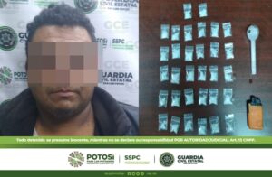 Por otra parte, se efectúa el arresto de Oswaldo de 31 años de edad en la colonia Genovevo Rivas Guillén a quien se le sorprendió con un total de 36 dosis al parecer de “cristal” con un peso de 16 gramos, reconociendo que vende droga en las inmediaciones de su domicilio particular.
