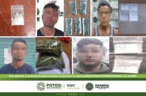 S.L.P.- En las últimas 24 horas, 9 personas fueron detenidas por su probable responsabilidad en la posesión de droga, por agentes de la Guardia Civil Estatal como consecuencia de los diversos recorridos y dispositivos de prevención de delitos en el territorio potosino estatal, en el marco del Plan Integral de Seguridad.