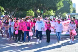 Atendiendo la instrucción del Gobernador de San Luis Potosí, Ricardo Gallardo Cardona, de reforzar las acciones para concientizar sobre el cáncer de mama, debido a que es considerada la principal causa de muerte por tumor maligno en mujeres mexicanas y que durante el 2022 se han identificado 165 nuevos casos por los Servicios de Salud en el Estado, el secretario de Salud Daniel Acosta Díaz de León encabezó la Caminata Rosa este domingo 16 de octubre.