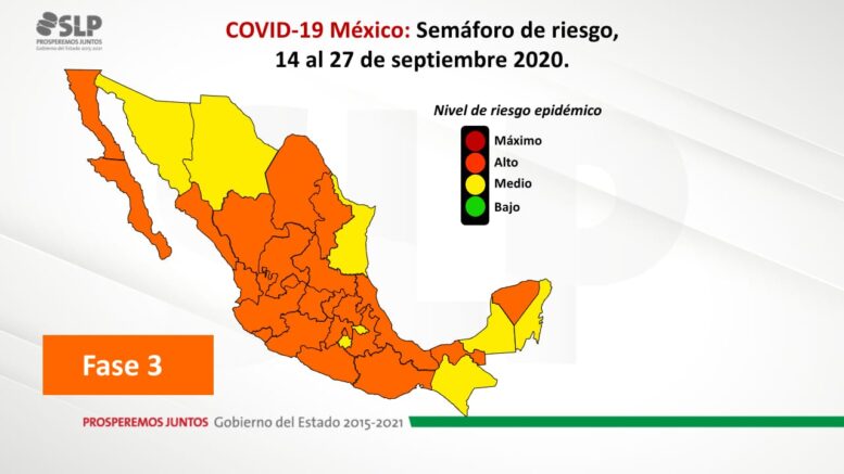 Mónica Liliana Rangel Martínez, Secretaria de Salud, reafirmó que la Federación confirmó que SLP permanece en Semáforo Naranja por quince días más, “sino bajamos la guardia estos quince días más podríamos cambiar de color, el llamado es a la solidaridad como hasta ahora, lo que nos permitirá ir abriendo más actividades con protocolos de seguridad siempre”, detalló.