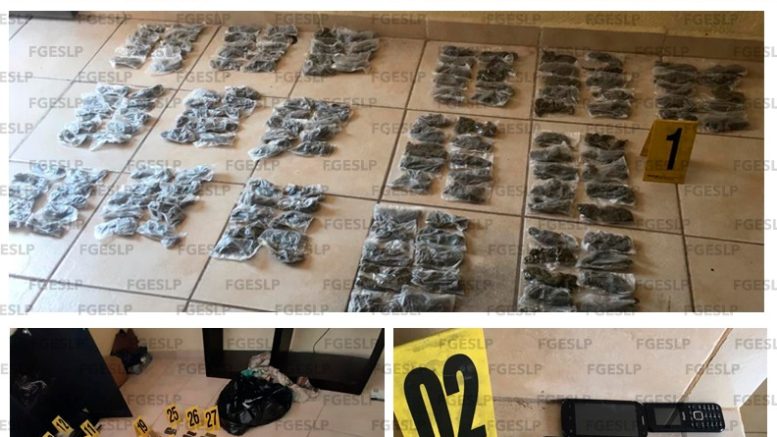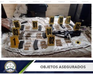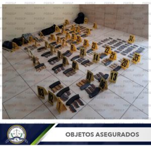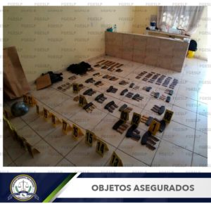 RIOVERDE. – La Fiscalía General del Estado de San Luis Potosí (FGESLP) llevó a cabo dos cateos en Rioverde, en donde logró el aseguramiento de 7 armas de fuego largas, más de 1 mil 661 cartuchos útiles, 98 cargadores de armas de fuego de diversos calibres, 3 granadas de fragmentación, 4 motocicletas, cerca de 36 kilos de marihuana y equipo táctico, entre otros objetos.