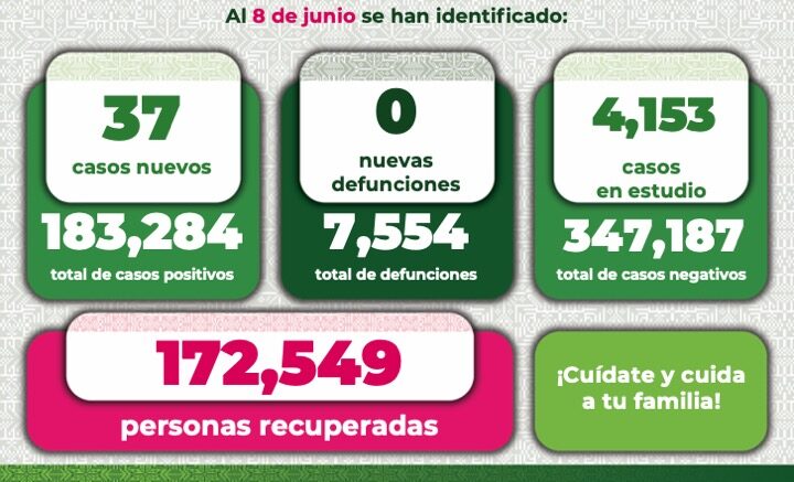 El Comité Estatal para la Seguridad en Salud y los Servicios de Salud dan a conocer 37 nuevos contagios confirmados en la Entidad. De esta forma, informan que, hasta este día, se registran 183 mil 284 casos totales de este padecimiento.
