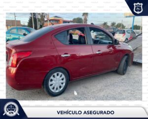 Se trata de un coche color rojo de la marca Nissan, tipo Versa, modelo 2015, que circulaba sin placas.