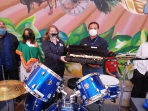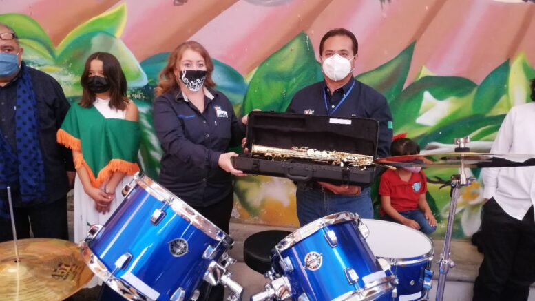 El lote de instrumentos que fue recibido de manera directa por la maestra Alicia Guadalupe López Méndez, Directora de esta Banda de Música, de forma conjunta con los niños, jóvenes que la integran, y por padres de familia que se dieron cita; consta de una tuba de pecho, un flautín piccolo, una batería, tres flautas transversales, un clarinete, una trompeta doble llave, un trombón de vara, un saxofón alto eb laqueado, un saxofón sopreano recto, un saxofón tenor, un saxofón baritono, dos clarinetes requinto y un saxofón alto Eb Silbertone.