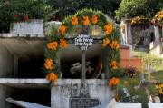 XILITLA, San Luis Potosí.- El Panteón Municipal de Xilitla fue visitado por familiares de los difuntos que ahí descansan para decorar con el tradicional arco de flores de cempasúchil y hojas de palmilla las sepulturas de sus muertos.