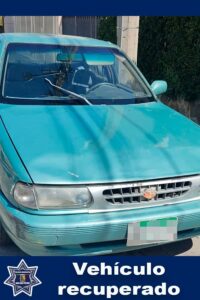 Como segunda acción, en la calle Rubén Darío al poniente de la ciudad, se localizó un auto modelo Tsuru color verde, el cual presentaba el cofre abierto, por lo que los agentes municipales detuvieron la marcha y verificaron su estado el cual presentó reporte de robo vigente, procediendo a su resguardo y puesta a disposición correspondiente.