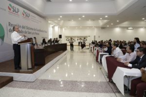 El titular del Ejecutivo resaltó la importancia de que autoridades municipales y estatales trabajen coordinadamente para lograr este objetivo, durante este encuentro reconoció la participación de Presidentes Municipales, Tesoreros, Coordinadores de Desarrollo Social y Contralores Internos de los 58 municipios de San Luis Potosí.
