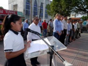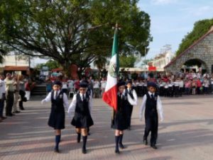Estudiantes y personal docente de la primaria “Club de Leones” de la colonia 18 de Marzo, tuvieron a su cargo la organización de la ceremonia de Honores a la Bandera este lunes 24 de abril en la Plaza Principal, acto coordinado con la Dirección Municipal de Acción Cívica.