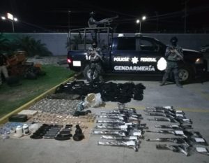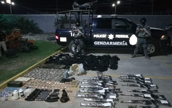 Personal del Agrupamiento de Seguridad Fronteriza de la División de Gendarmería de la Policía Federal de México, junto con personal de la Secretaría de la Defensa Nacional atendió una denuncia ciudadana en Reynosa, Tamaulipas, que refería la existencia de armamento “enterrado”.