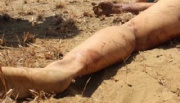 Sin embargo, debido a que la bolsa ya se encontraba rota se logró apreciar que el rostro lo tenía desfigurado, aparentemente por golpes. La pierna derecha la tenía completamente carcomida por perros y la fauna de la zona.