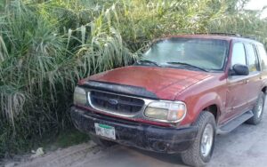 En el lugar estaba una camioneta color rojo Ford explorer con placas de circulación UWK 321 V deleitado de San Luis Potosí en la que en su interior se encontraron machas de sangre y un fétido olor .
