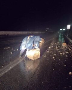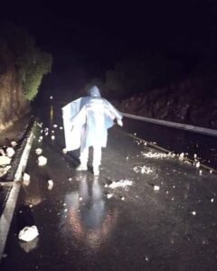 Además Seguridad Pública Municipal de Mexquitic apoyó en la carretera no. 49 Zacatecas km. 30 para remover rocas que quedaron sobre el carril de circulación, provocado por los deslaves de los cerros derivado de la fuerte lluvia de está madrugada.