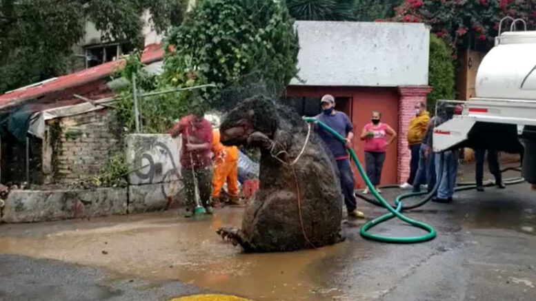 No obstante, hasta el momento se desconoce el origen del gigantesco animal de felpa que hallaron en el drenaje.