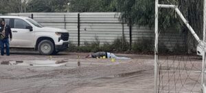 El cuerpo del elemento quedó tirado en una cancha deportiva mientras que el otro elemento herido fue llevado a recibir atención médica.