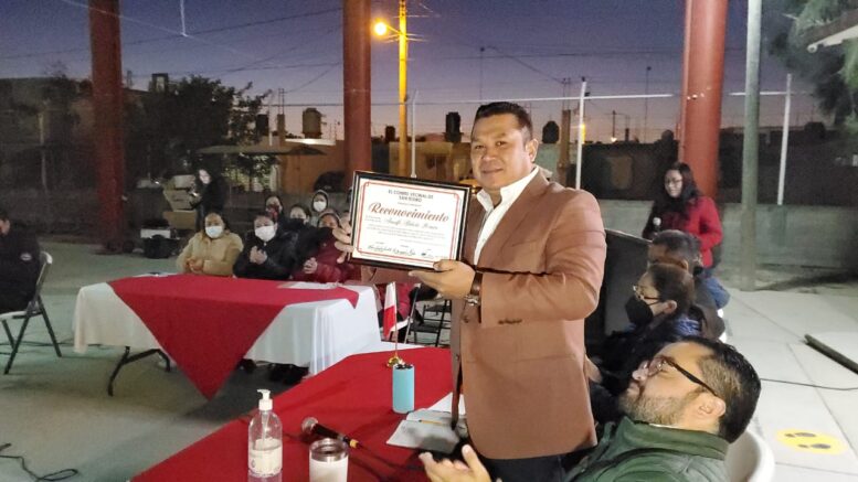 También participó el Comité Vecinal del Fraccionamiento San Isidro cuyas necesidades son atendidas y dio pauta a la entrega de un reconocimiento especial al alcalde Arnulfo Urbiola Román por la respuesta favorable a sus peticiones de los habitantes del sector.