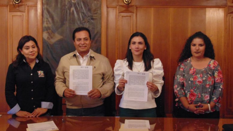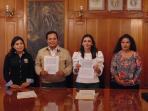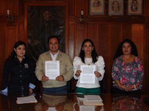 Para ello se llevó a cabo un acto protocolario en el salón de Cabildo de la Presidencia Municipal, mismo que fuera presidido por el Alcalde José Ramón Torres García, así como la titular del IMES, Erika Velázquez Gutiérrez, quienes plasmaron a la vez su rúbrica, en el documento respectivo.