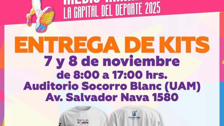 San Luis Potosí.– Este viernes 7 y sábado 8 de noviembre inicia la entrega de kits a los corredores que participarán en el Medio Maratón La Capital del Deporte 2025 a realizarse el domingo 9 de noviembre en punto de las 6:50 de la mañana.
