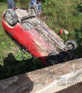Cuatro jóvenes estudiantes del instituto Tecnológico de Rioverde resultaron lesionados al volcar el automóvil en el que viajaban , fueron ayudados por lugareños quienes se percataron del accidente.