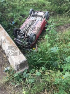 Los hechos se registraron la tarde de hoy miércoles en el camino que conduce a la comunidad de Capulín, el conductor de un automóvil Chevy color Rojo se salió de la carpeta asfáltica en una curva antes de llegar a la comunidad del Capulín cayendo a una acequia .